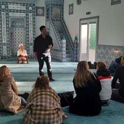Im Zuge der Integrationsarbeit und den Neuerungen im Schulcurriculum bieten wir die Tour "Glaubensvielfalt am Borsigplatz" jetzt auch als Schulklassenprogramm an. Die SchülerInnen begebn sich, ausgerüstet mit Papier und Bleistift, auf eine Reise vom Okzident zum Orient. Hierbei gilt es, Parallelen und Unterschiede der drei religiösen Ausrichtungen zu entdecken.