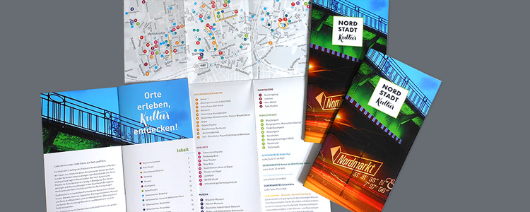 Die 2. Auflage des Faltplans NordstadtKultur bietet auf 16 Seiten die bunte Palette des Kreativ.Quartiers Echt Nordstadt, inkl. des eigeklebten Faltplans in Bookletform.